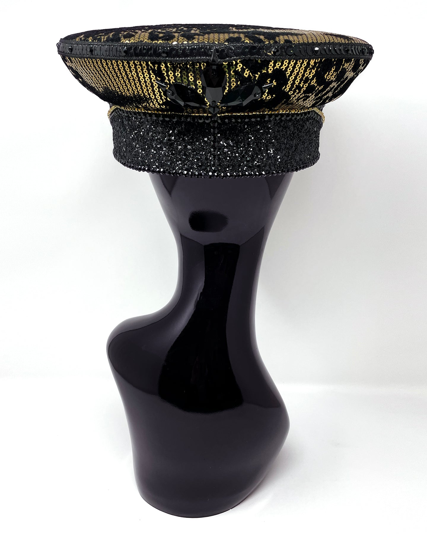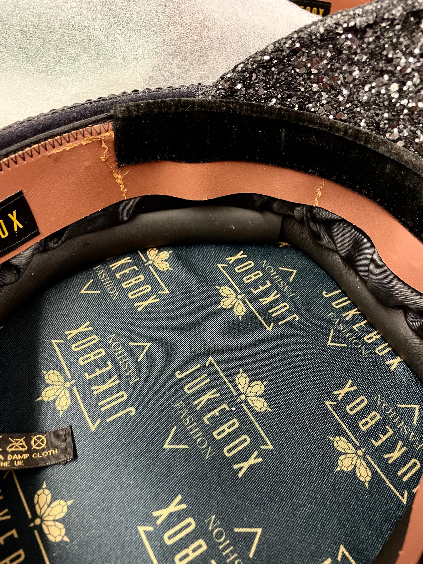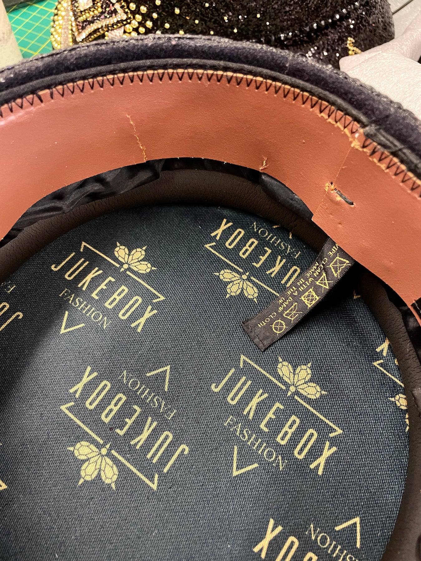 All Jukebox Fashion hats are hand crafted in the UK, with each and every piece of fabric, trim, gemstone and sequin carefully embellished and fixed in place. The base is always made from a genuine military hat (no Chinese copies to be found here) which means our products are tough enough to survive most weather conditions and the craziest of parties.