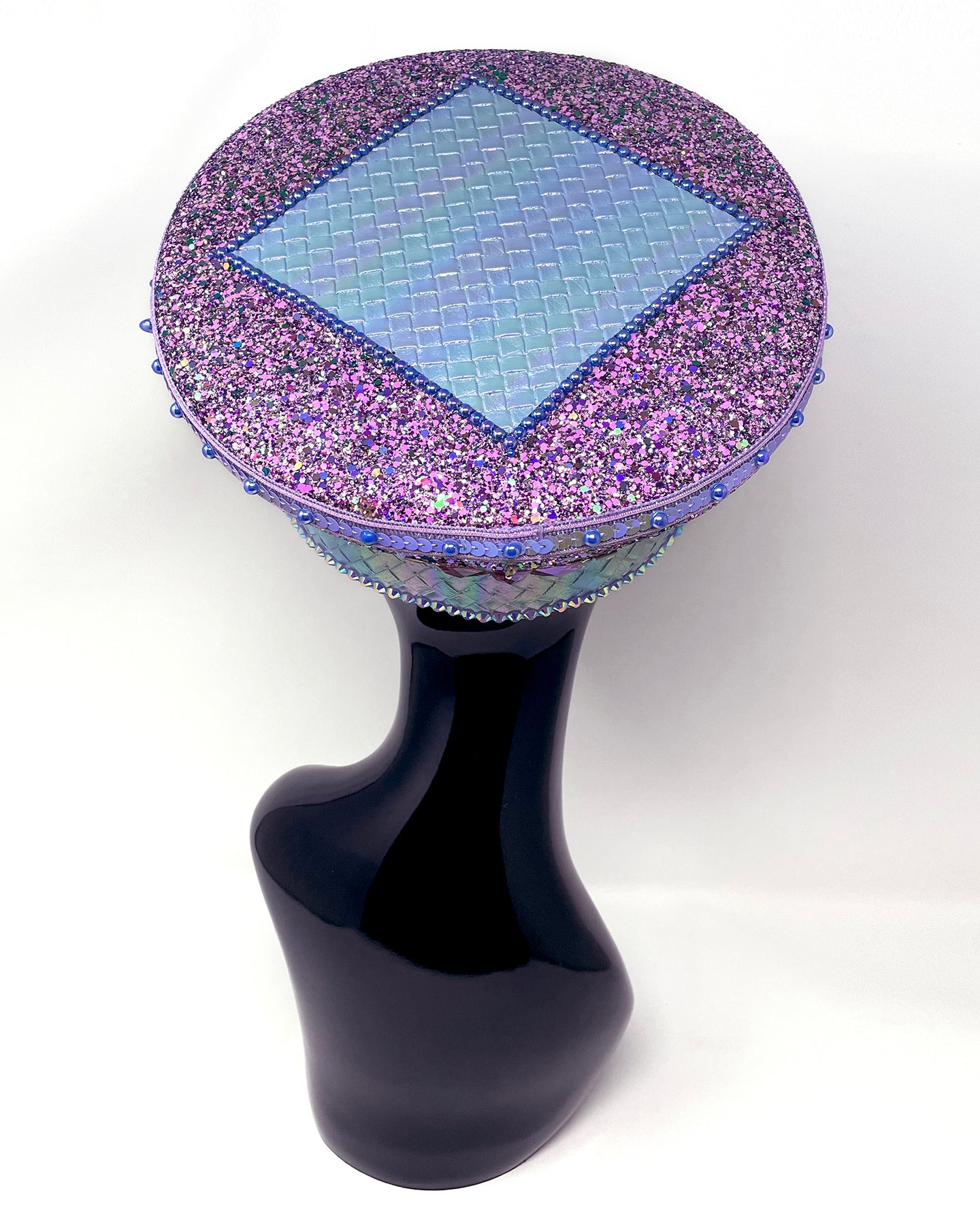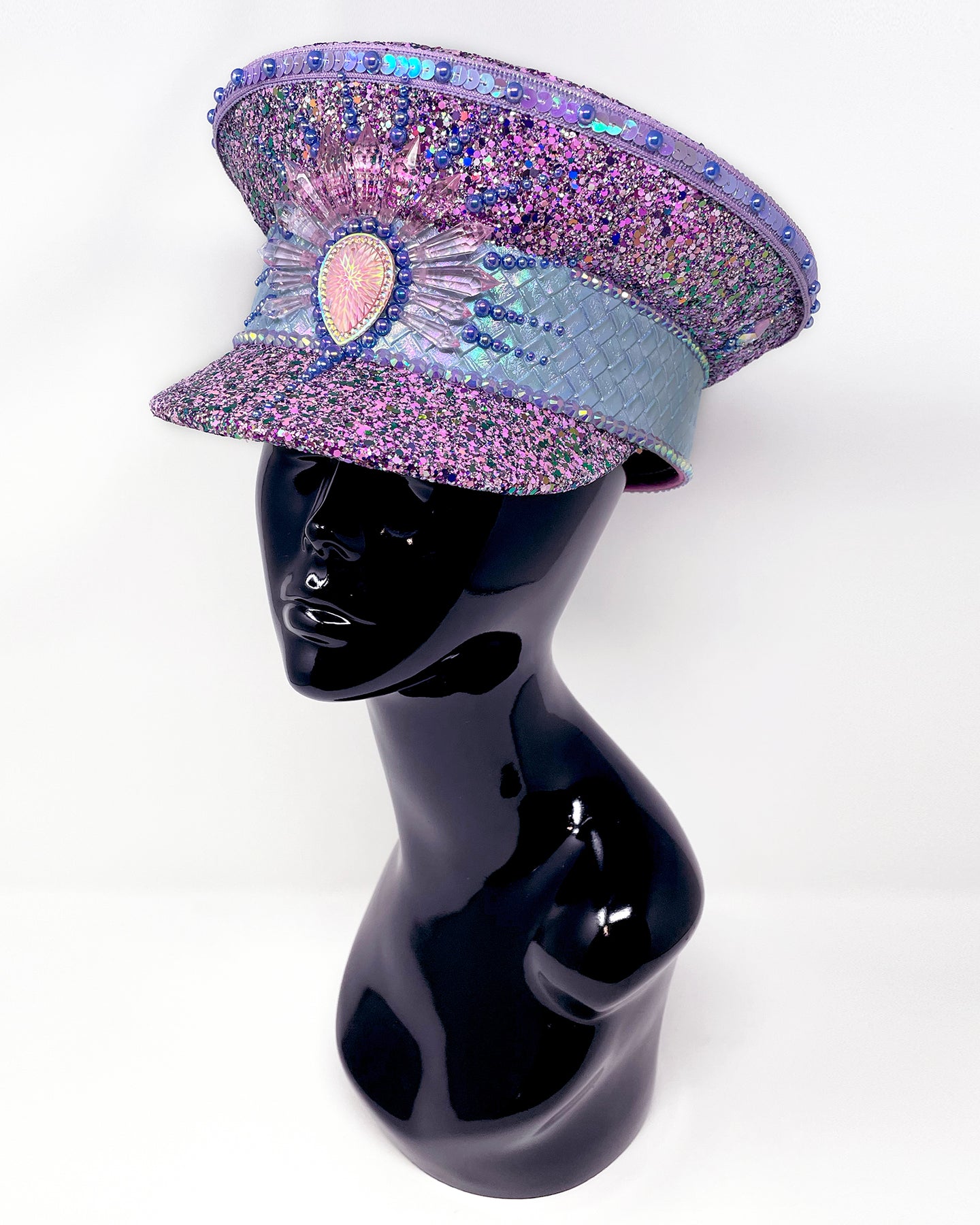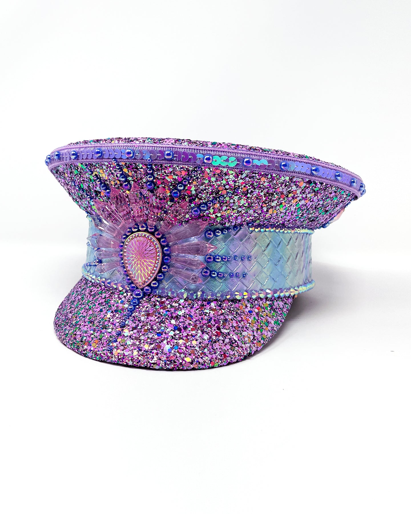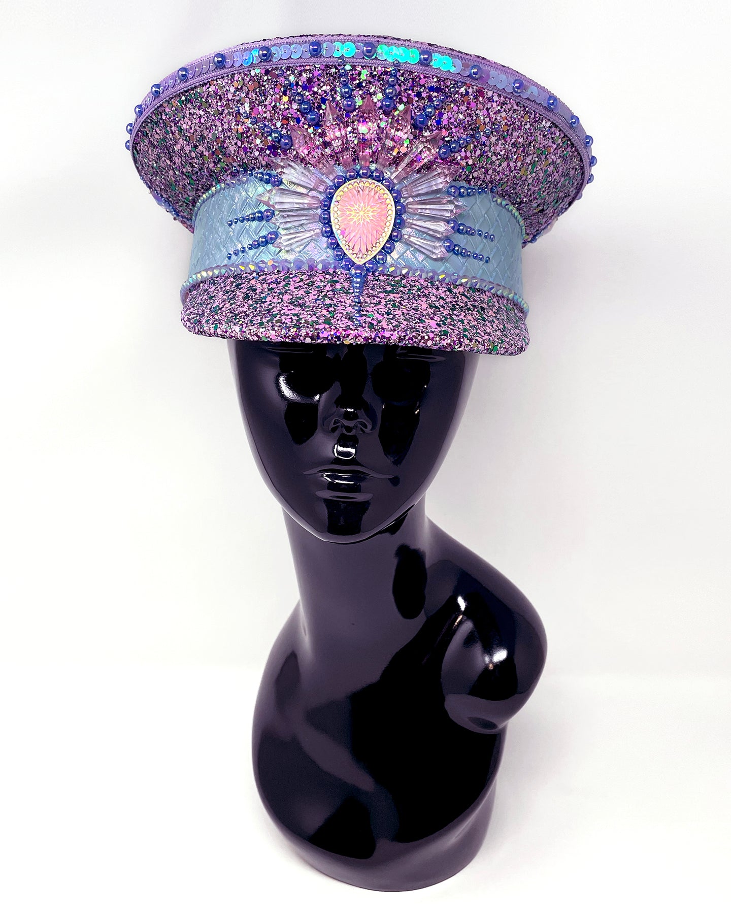 All Jukebox Fashion hats are hand crafted in the UK, with each and every piece of fabric, trim, gemstone and sequin carefully embellished and fixed in place. The base is always made from a genuine military hat (no Chinese copies to be found here) which means our products are tough enough to survive most weather conditions and the craziest of parties.