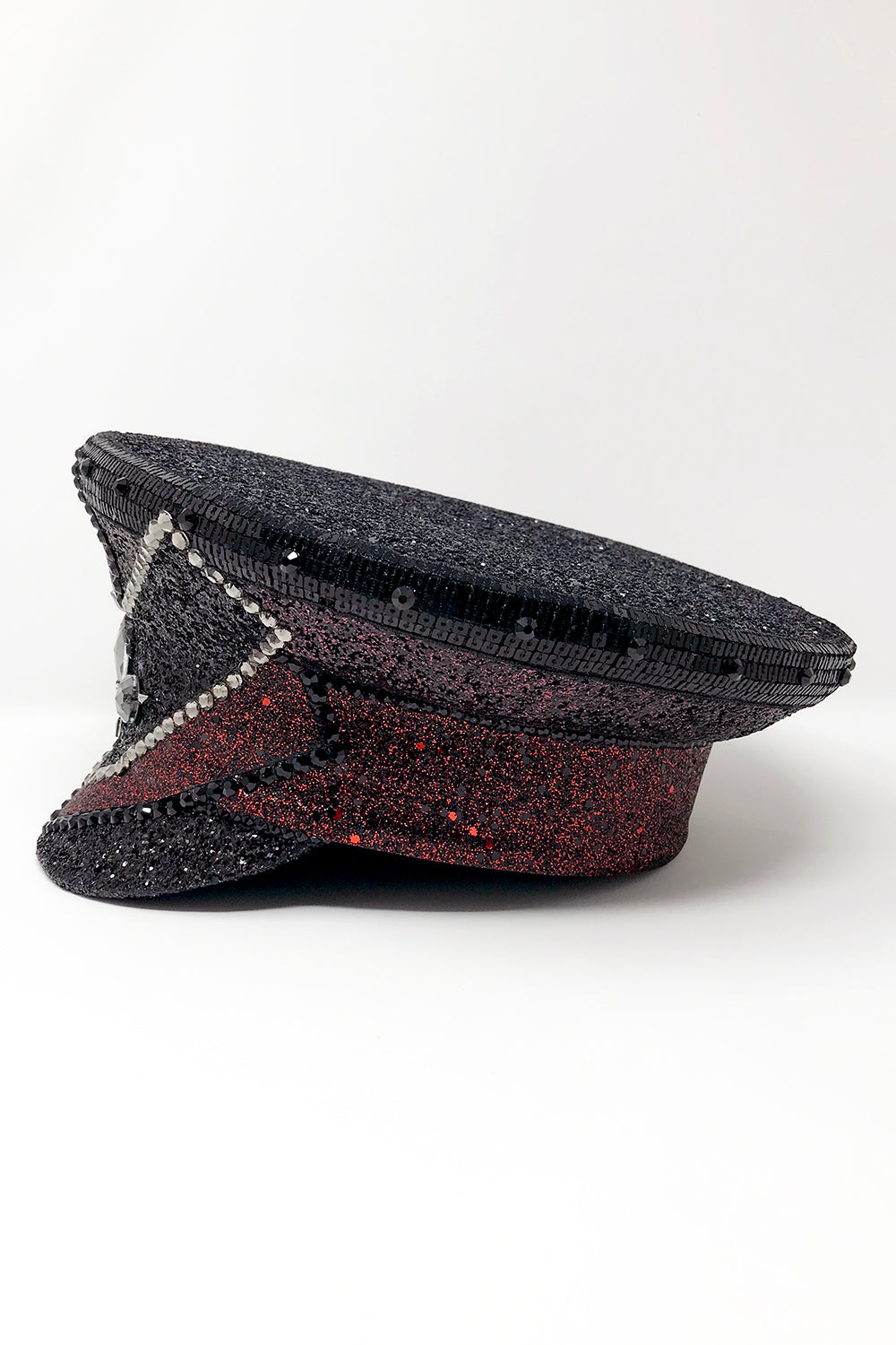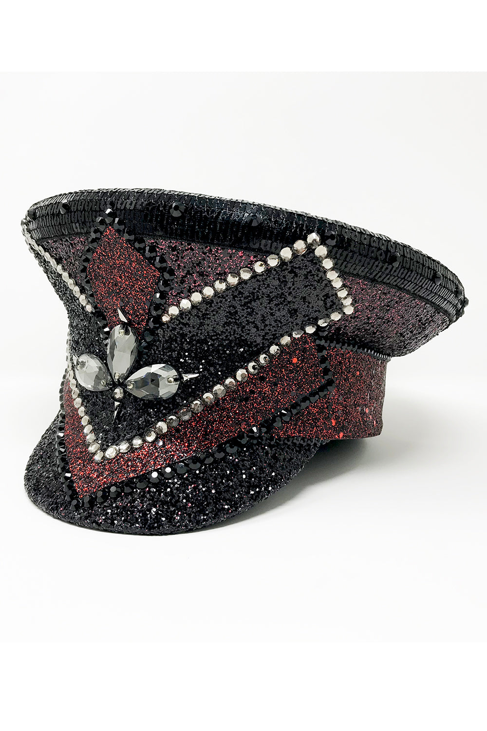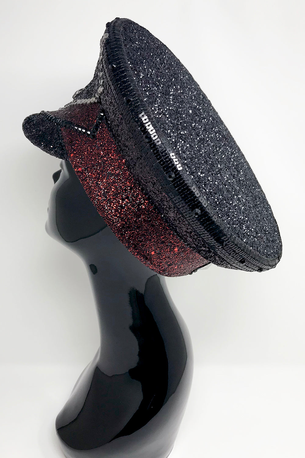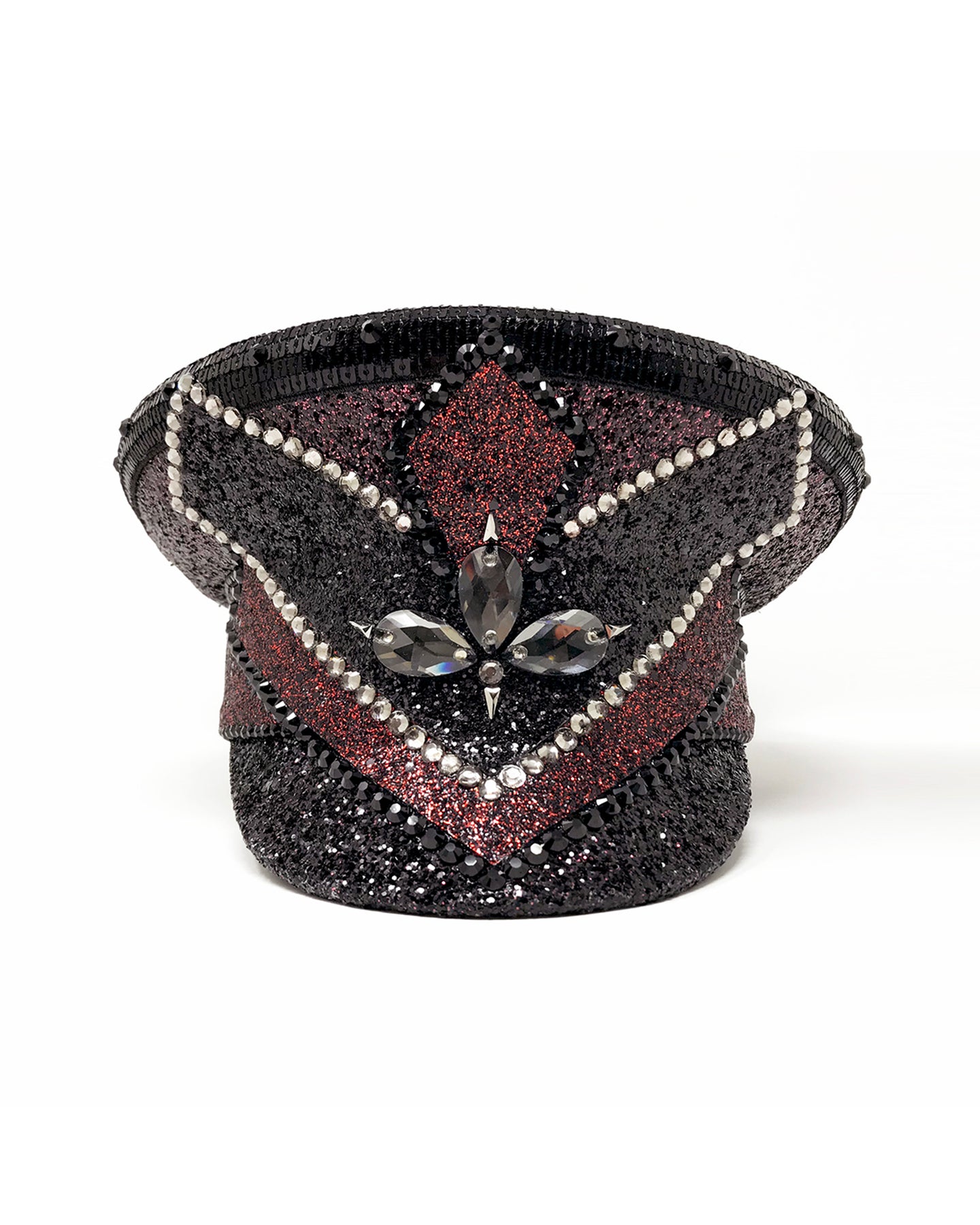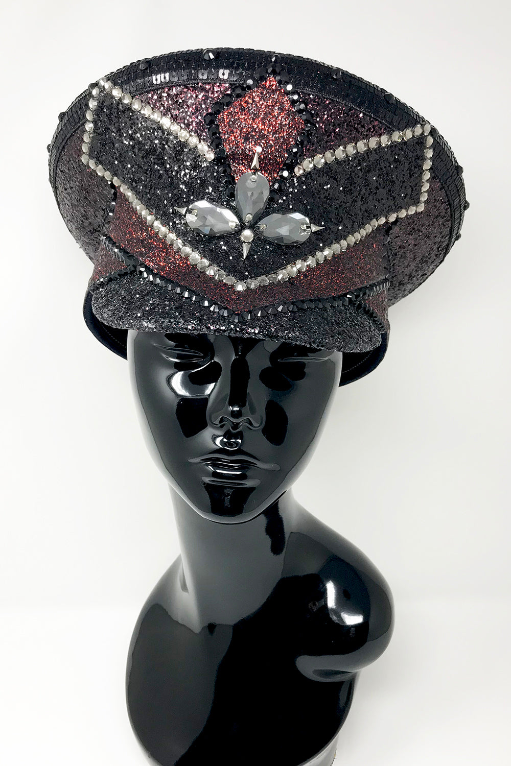 All Jukebox Fashion hats are hand crafted in the UK, with each and every piece of fabric, trim, gemstone and sequin carefully embellished and fixed in place. The base is always made from a genuine military hat (no Chinese copies to be found here) which means our products are tough enough to survive most weather conditions and the craziest of parties.