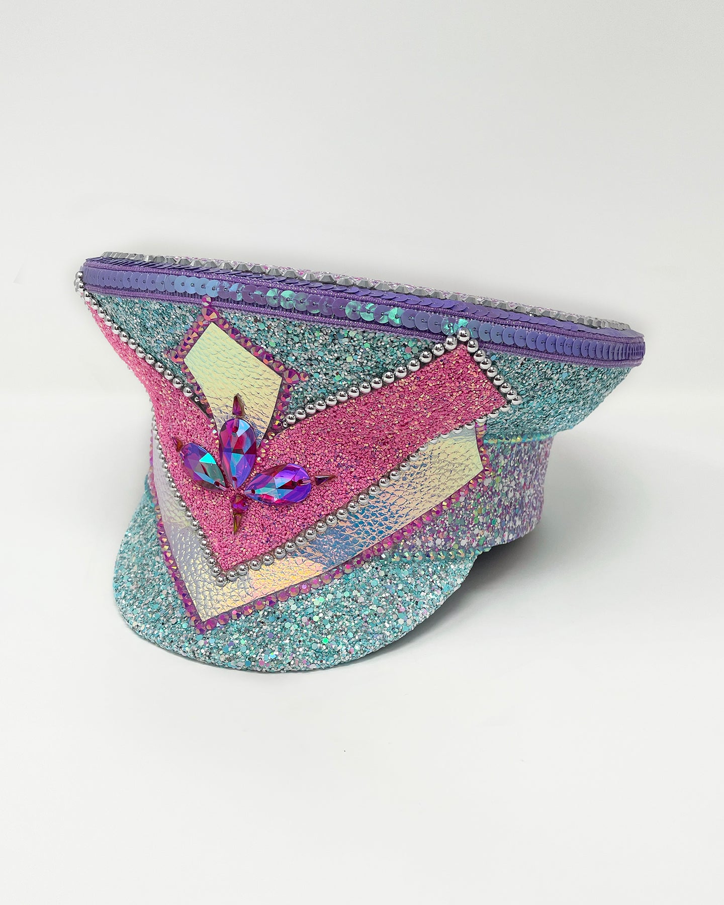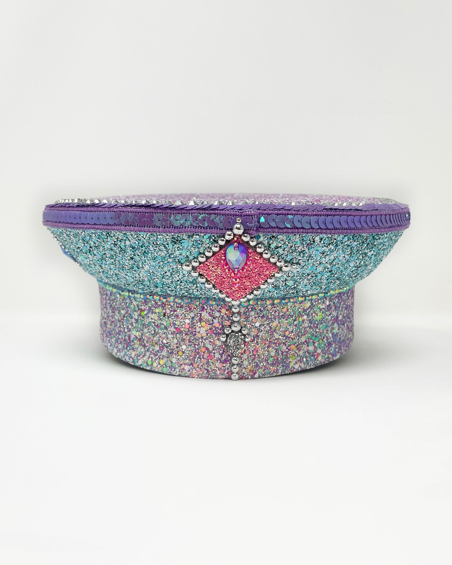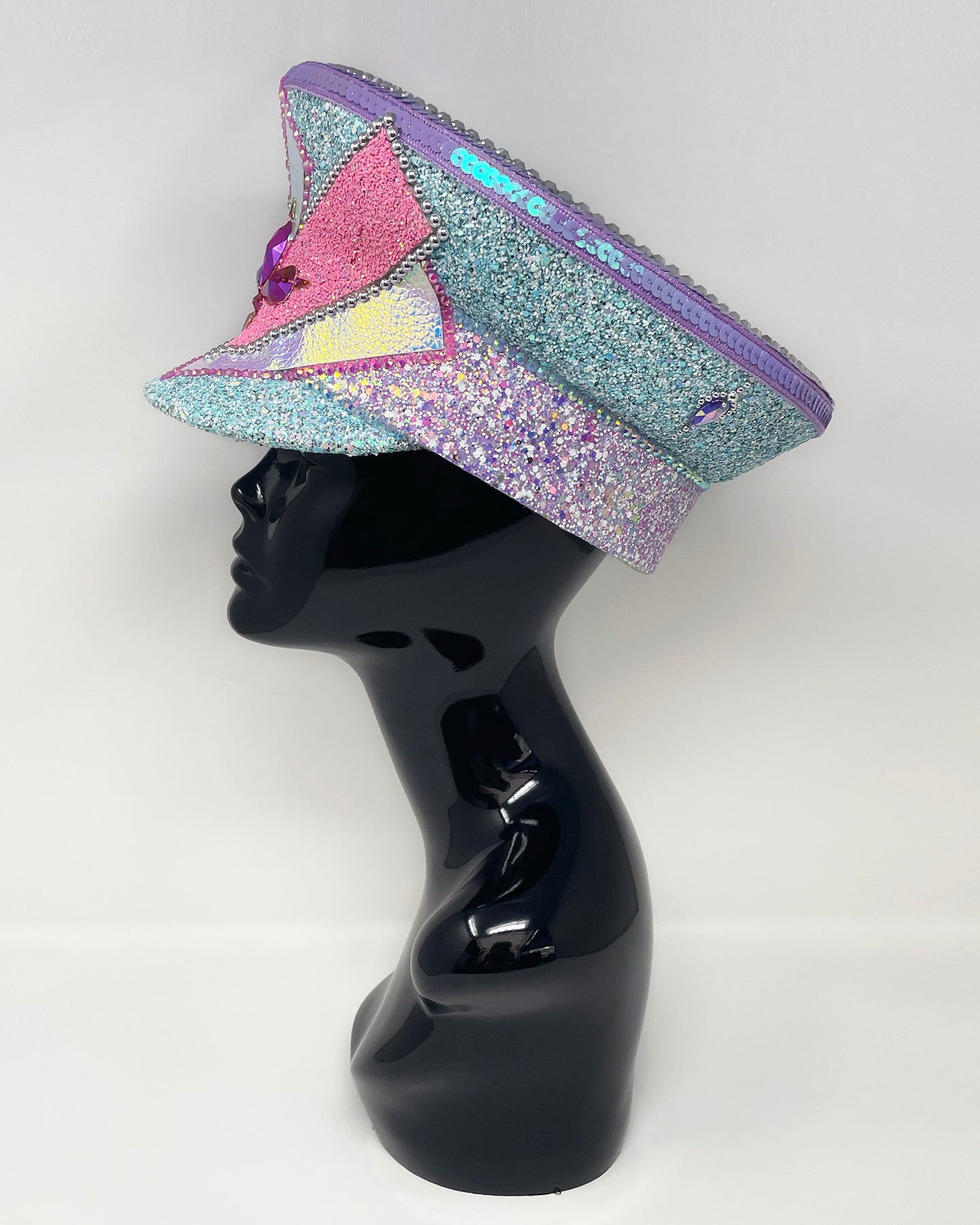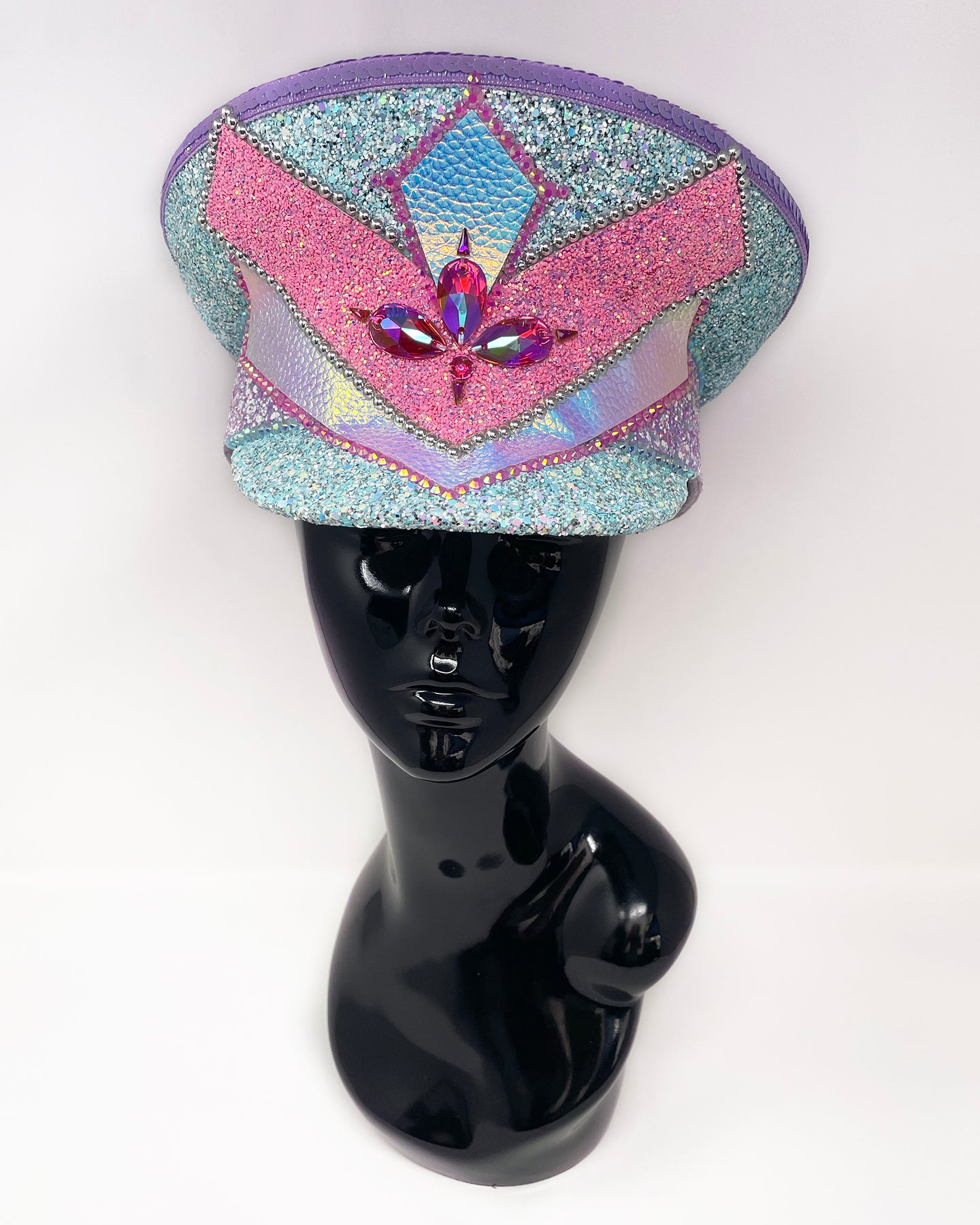 All Jukebox Fashion hats are hand crafted in the UK, with each and every piece of fabric, trim, gemstone and sequin carefully embellished and fixed in place. The base is always made from a genuine military hat (no Chinese copies to be found here) which means our products are tough enough to survive most weather conditions and the craziest of parties.