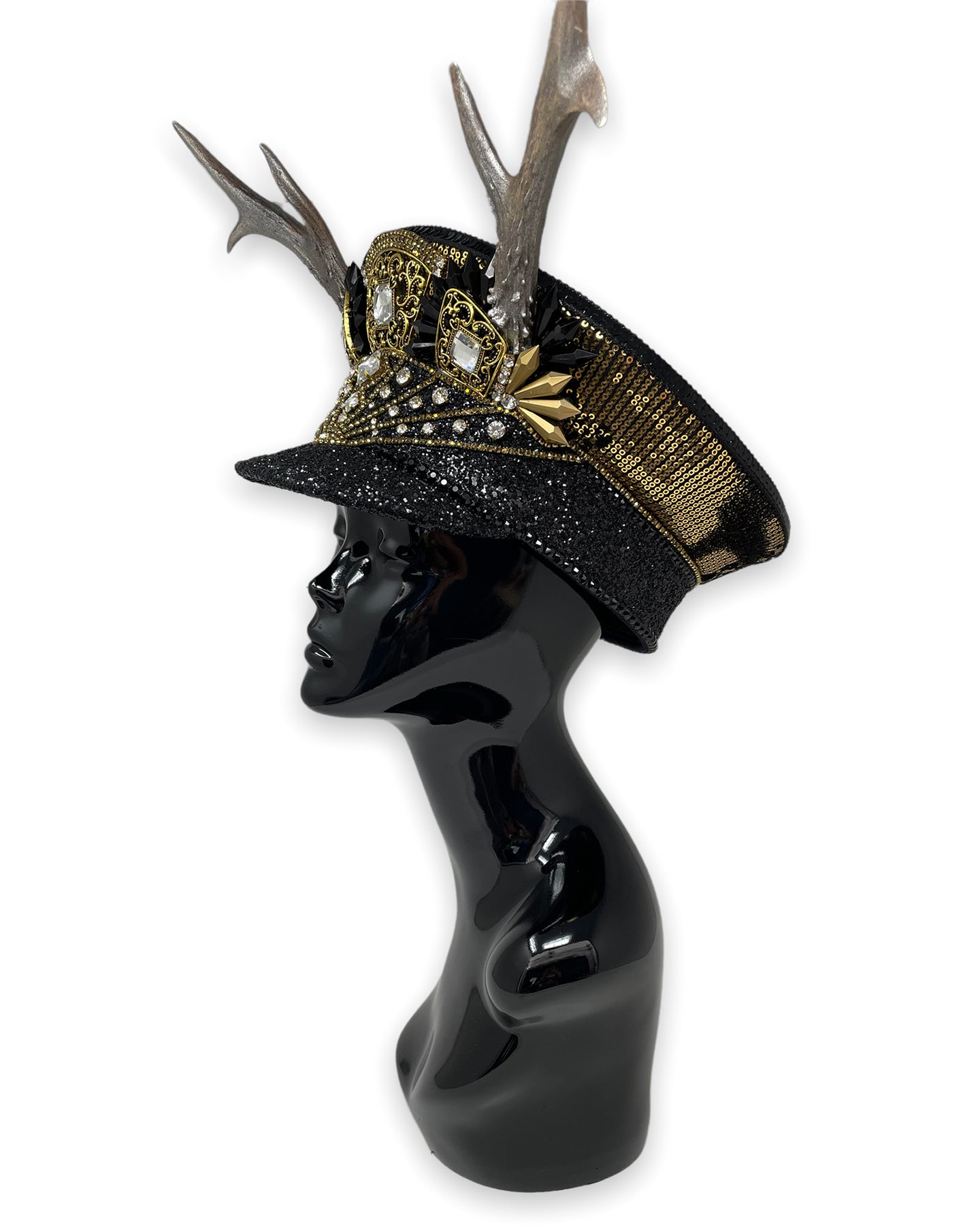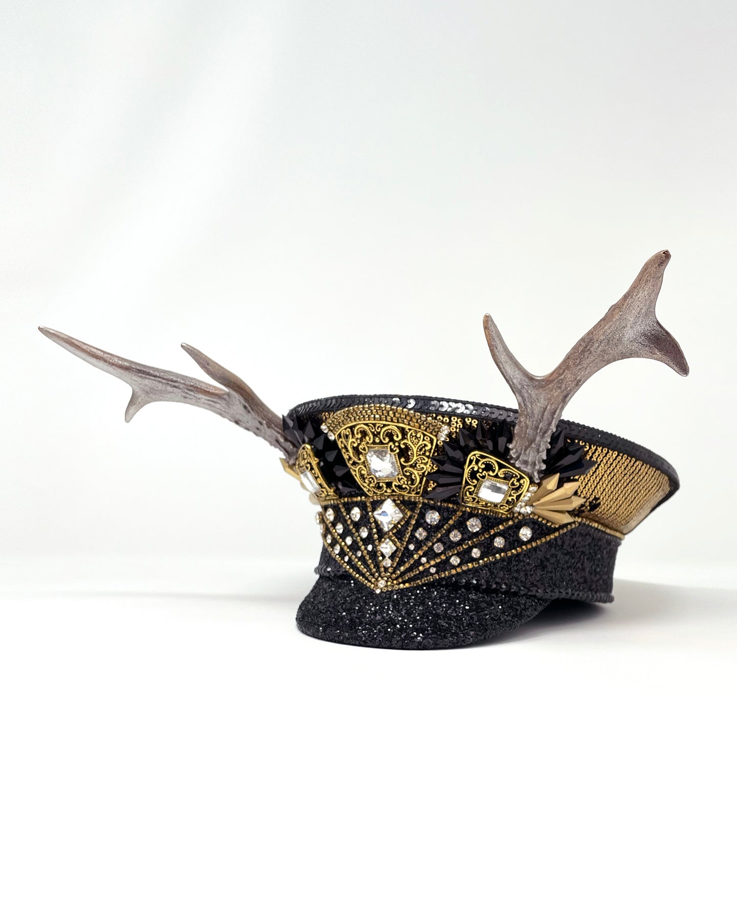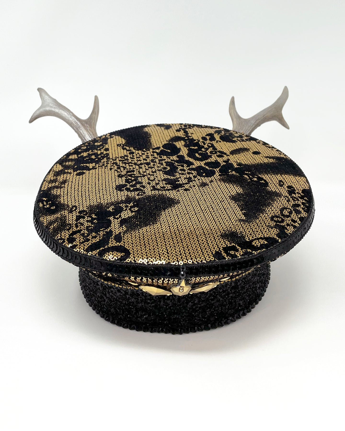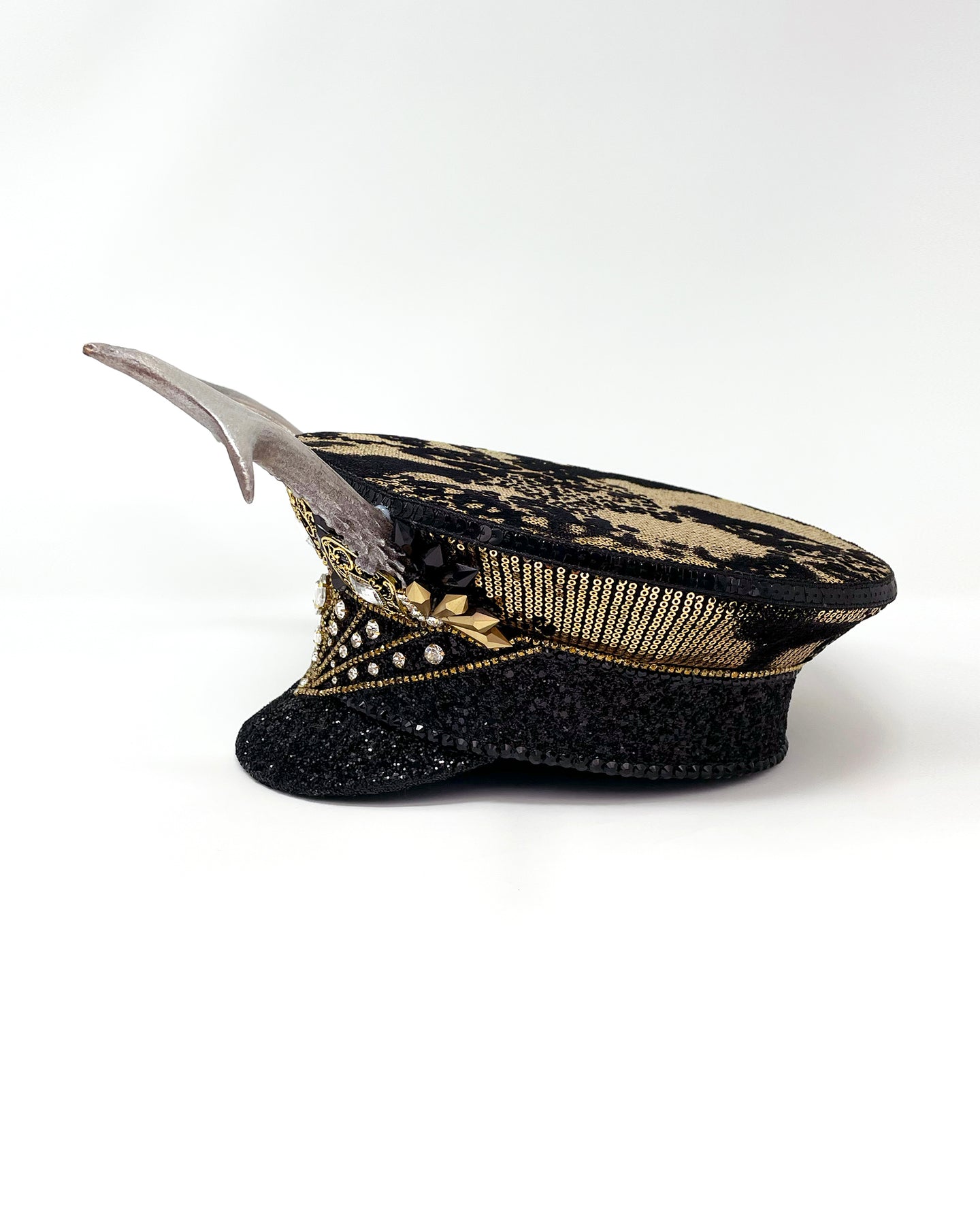 All Jukebox Fashion hats are hand crafted in the UK, with each and every piece of fabric, trim, gemstone and sequin carefully embellished and fixed in place. The base is always made from a genuine military hat (no Chinese copies to be found here) which means our products are tough enough to survive most weather conditions and the craziest of parties.