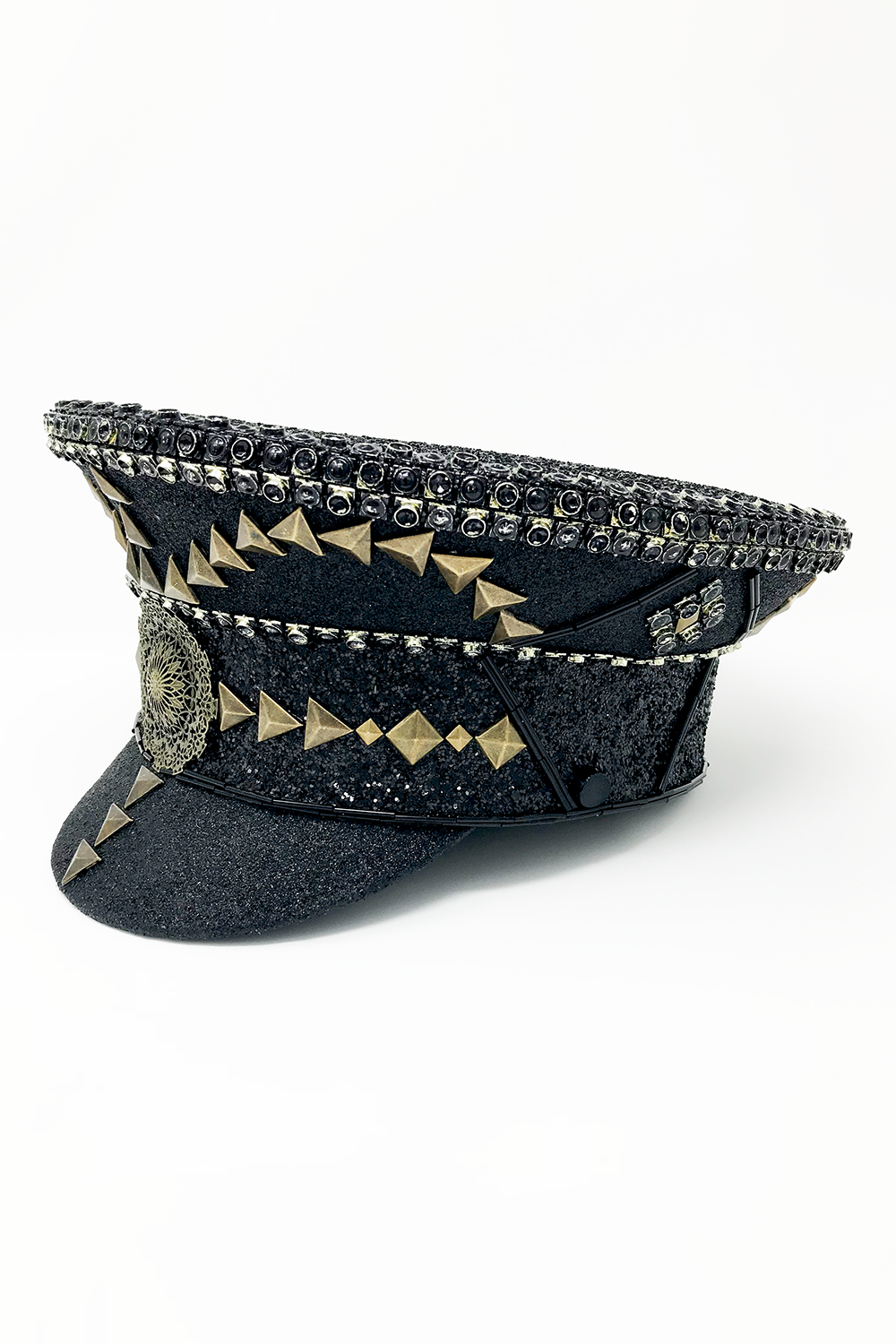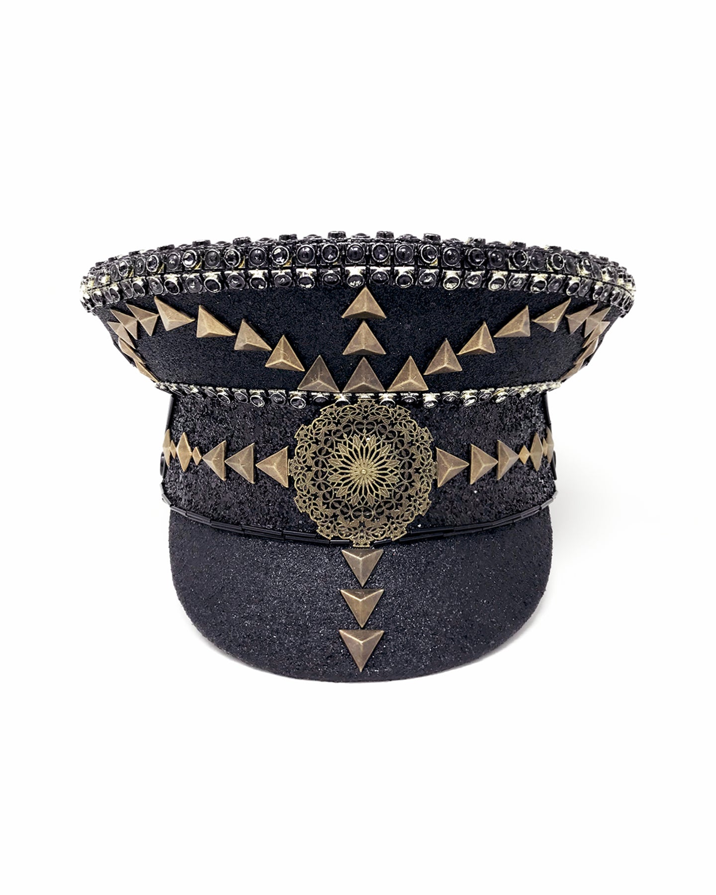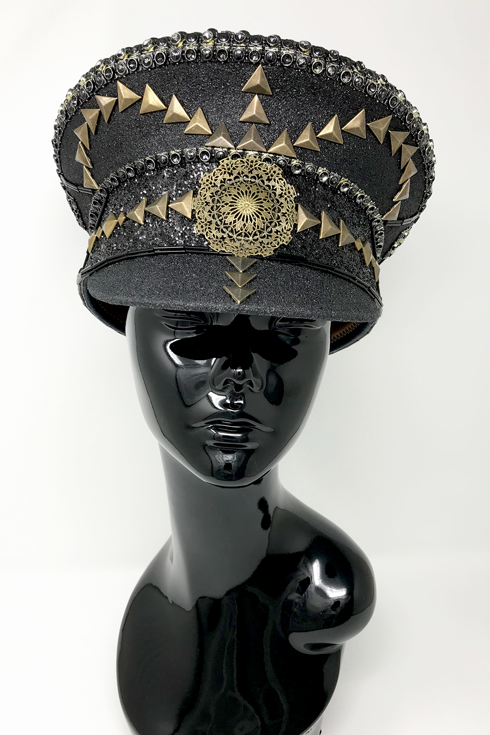 All Jukebox Fashion hats are hand crafted in the UK, with each and every piece of fabric, trim, gemstone and sequin carefully embellished and fixed in place. The base is always made from a genuine military hat (no Chinese copies to be found here) which means our products are tough enough to survive most weather conditions and the craziest of parties.