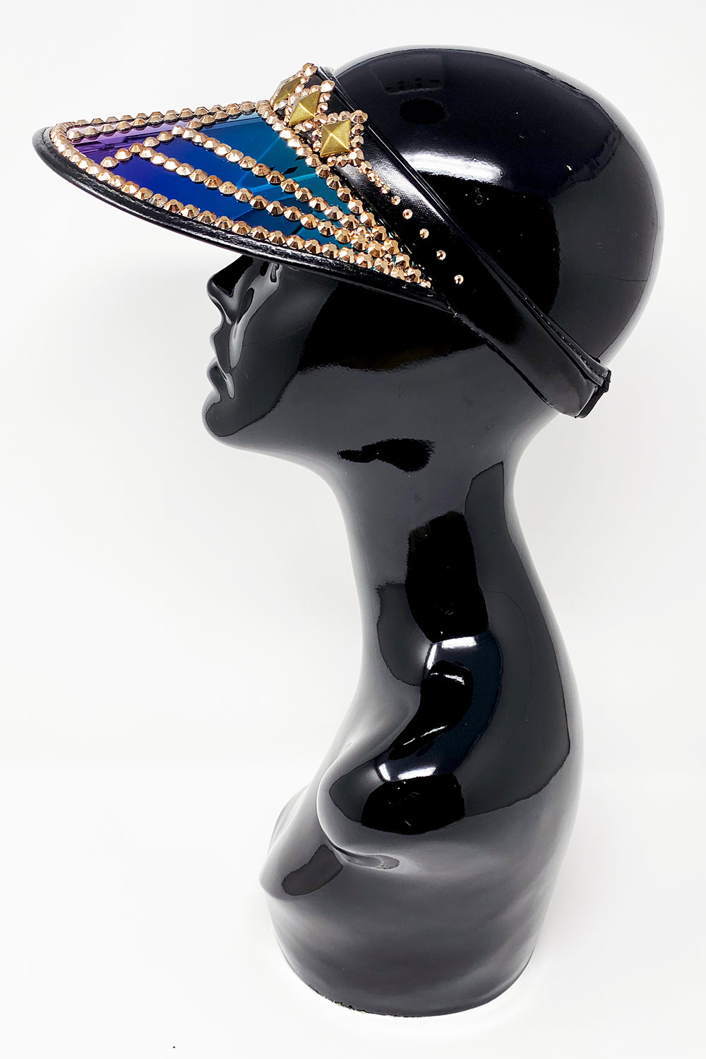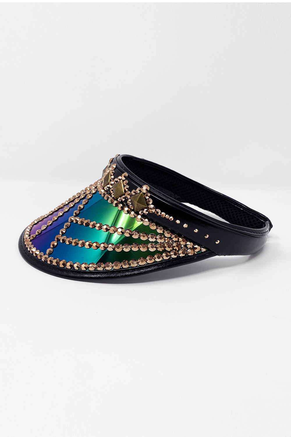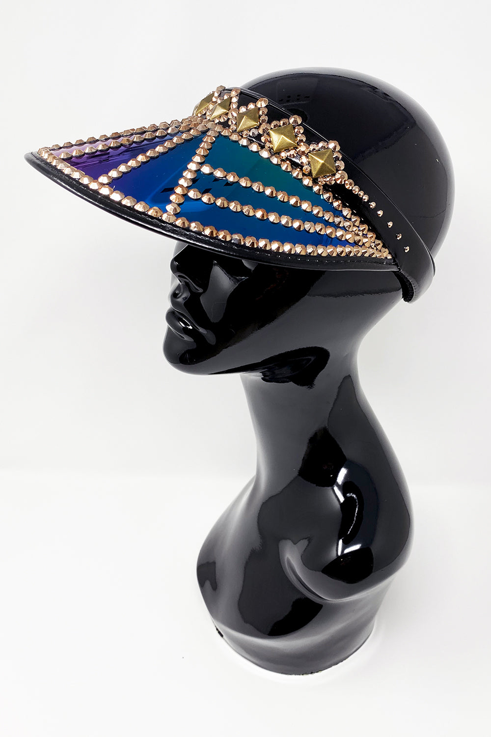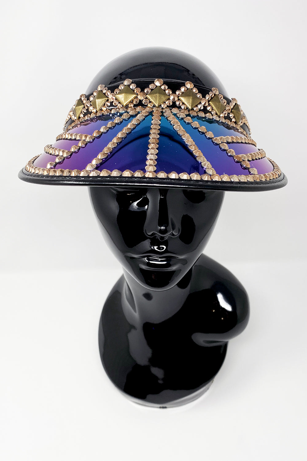 All Jukebox Fashion visors are hand crafted in the UK, with each and every piece of fabric, trim, gemstone and sequin carefully embellished and fixed in place.