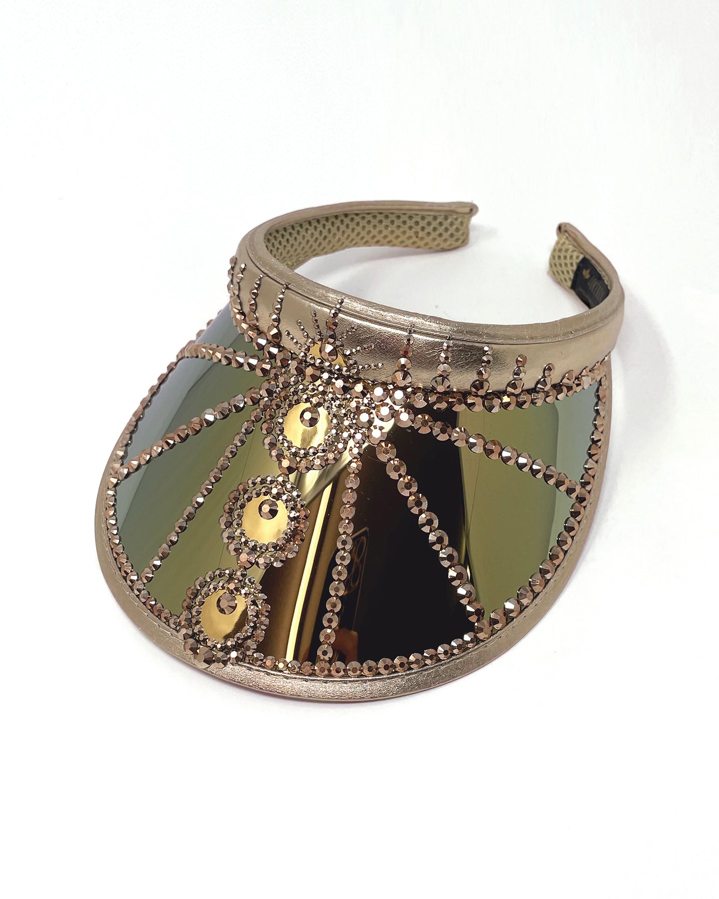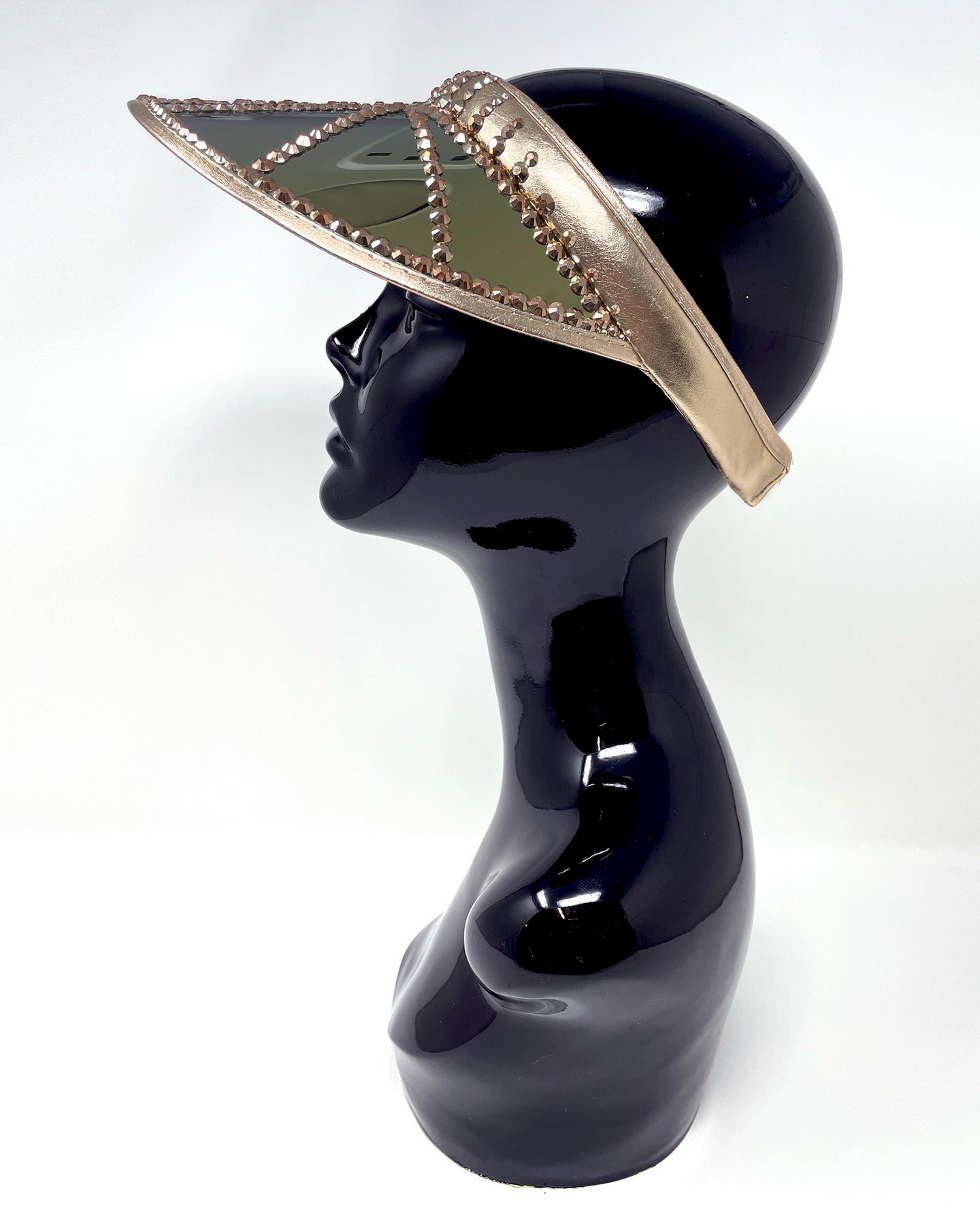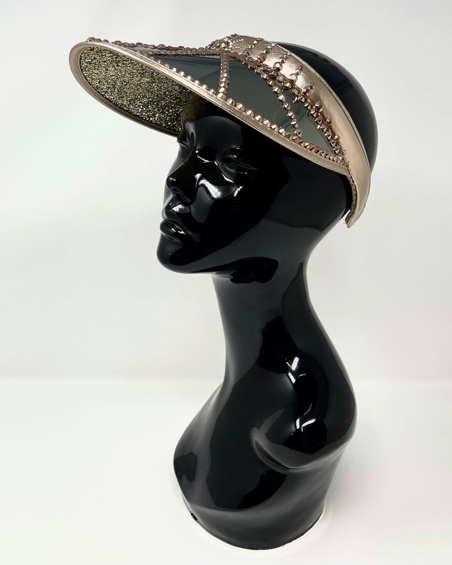 All Jukebox Fashion visors are hand crafted in the UK, with each and every piece of fabric, trim, gemstone and sequin carefully embellished and fixed in place.