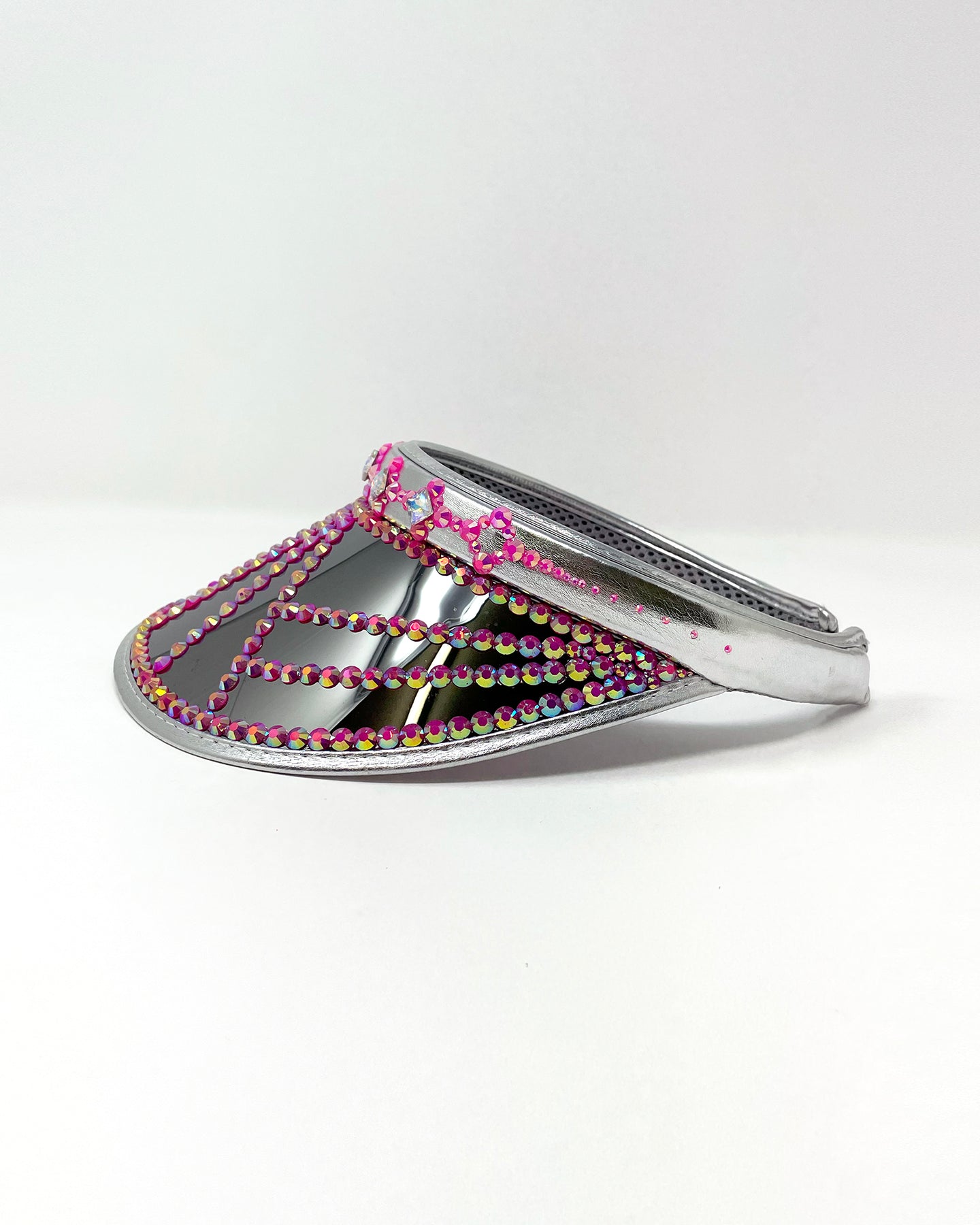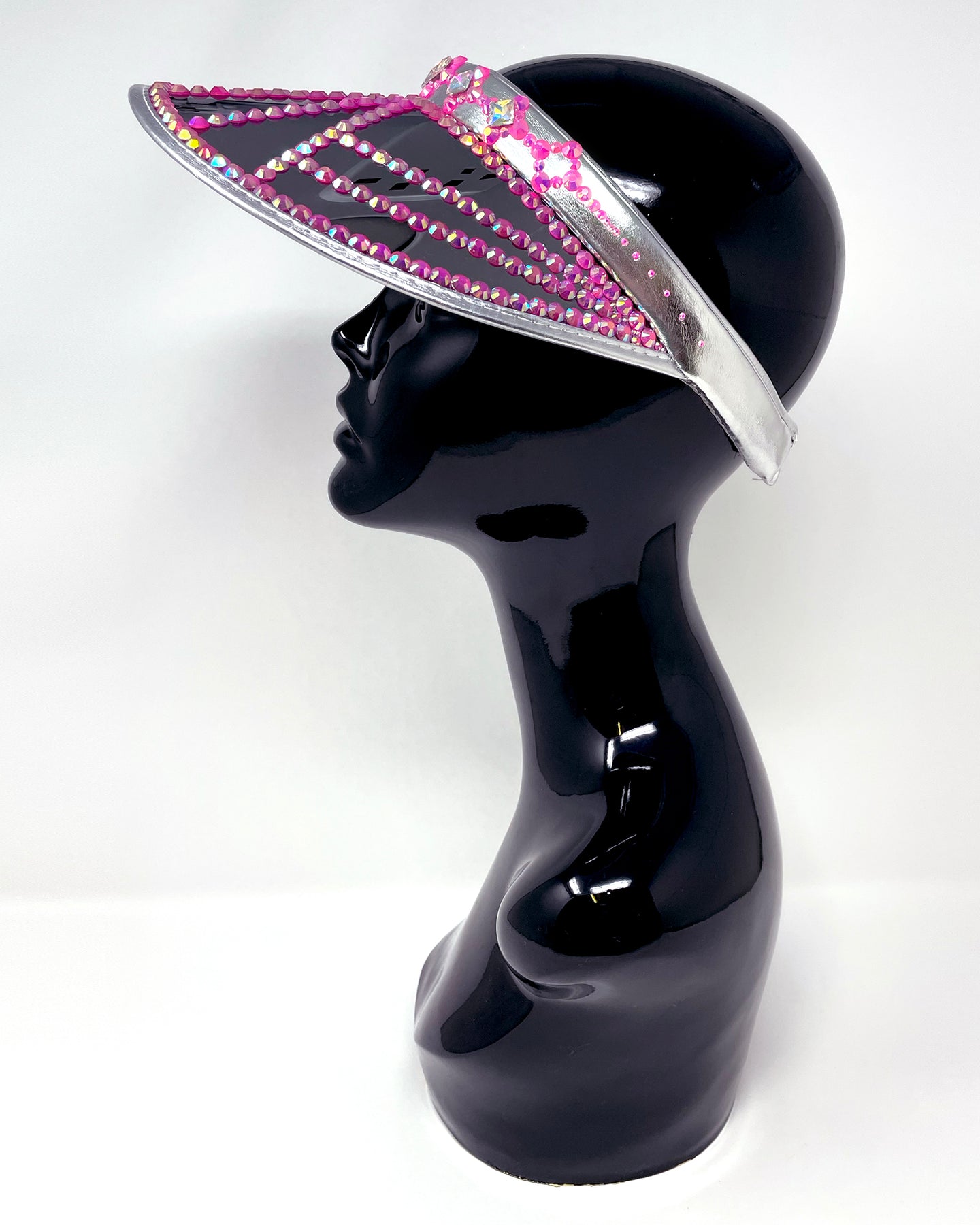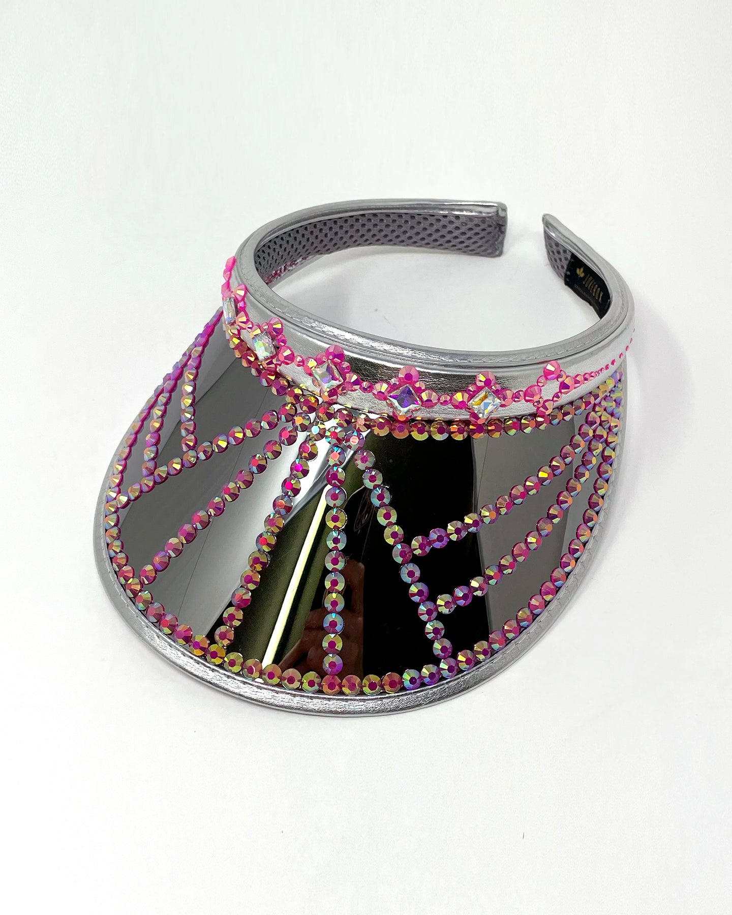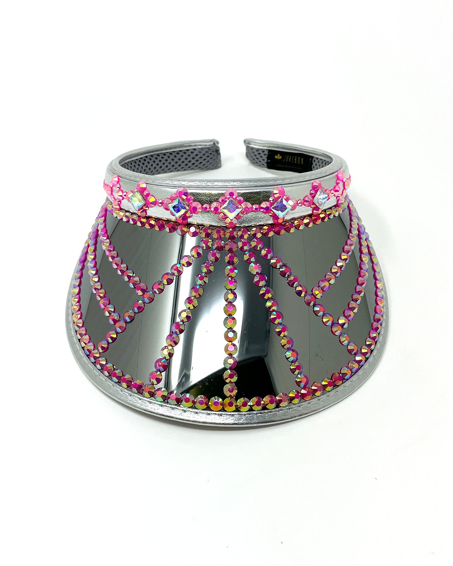 All Jukebox Fashion visors are hand crafted in the UK, with each and every piece of fabric, trim, gemstone and sequin carefully embellished and fixed in place.