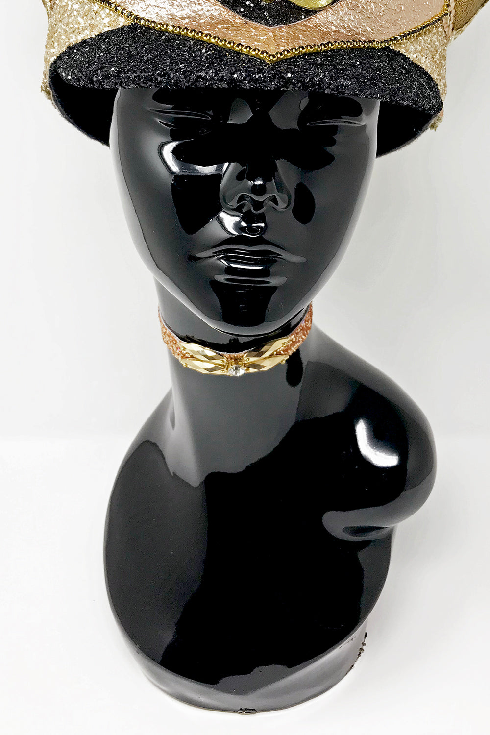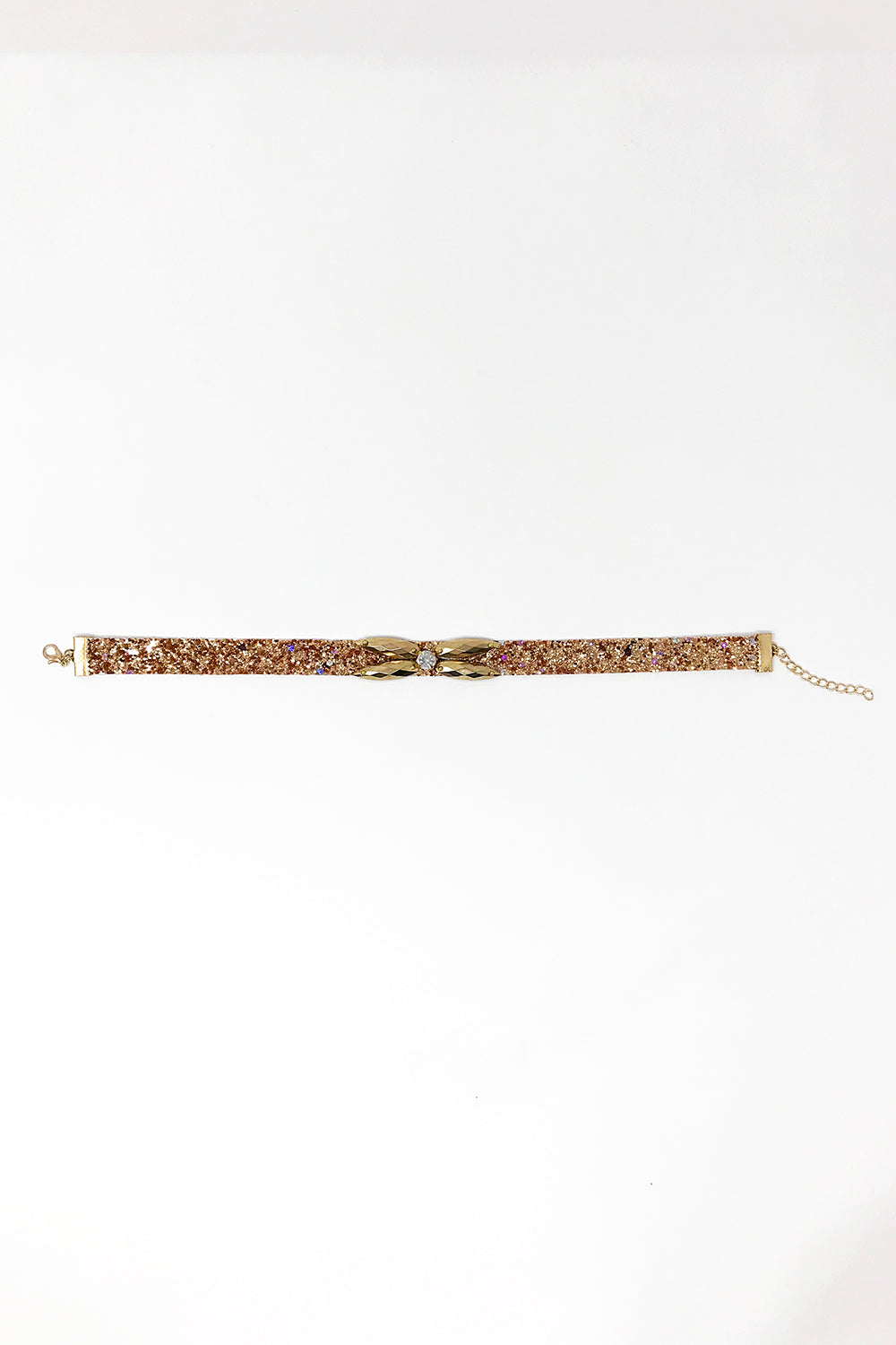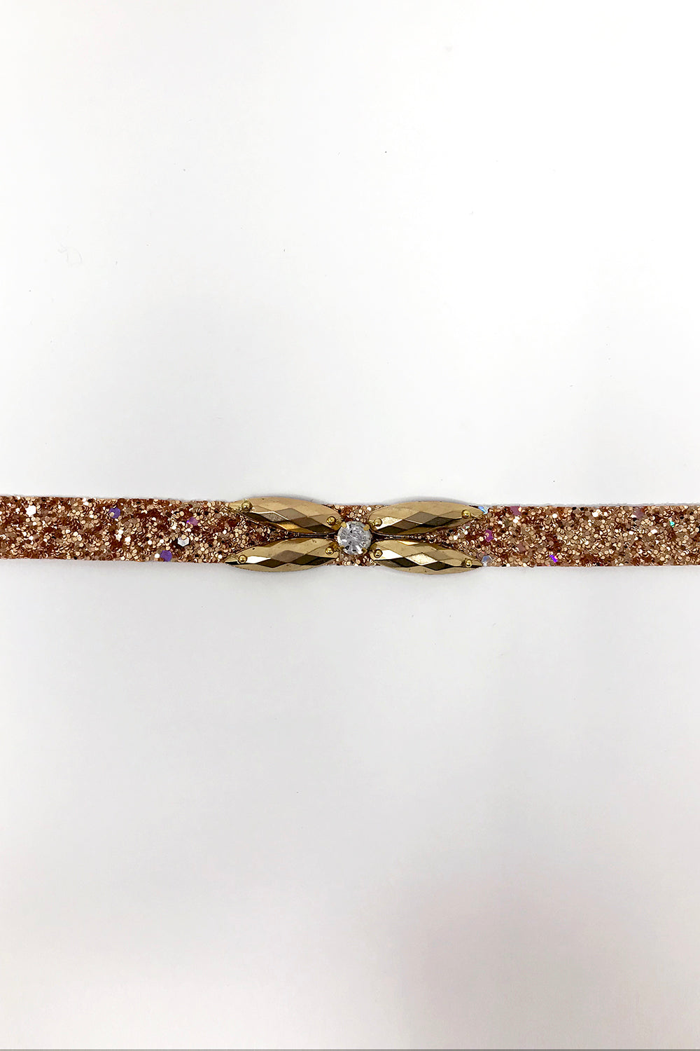 Chunky clear crystal stone with surrounding gold sphere rhinestones on a rich glitter gold base.