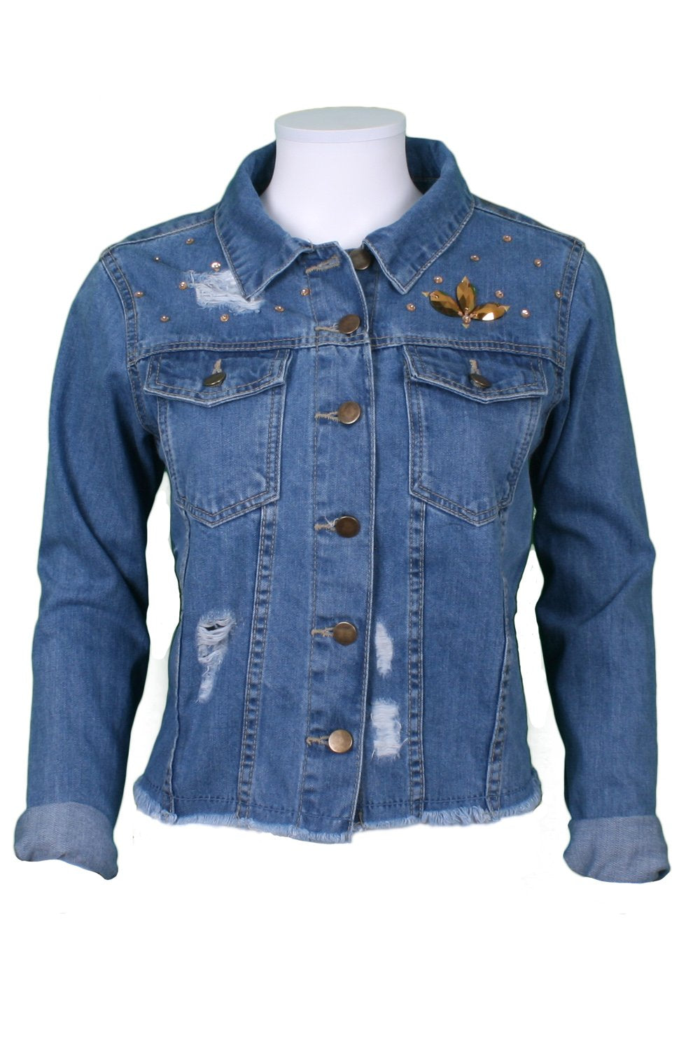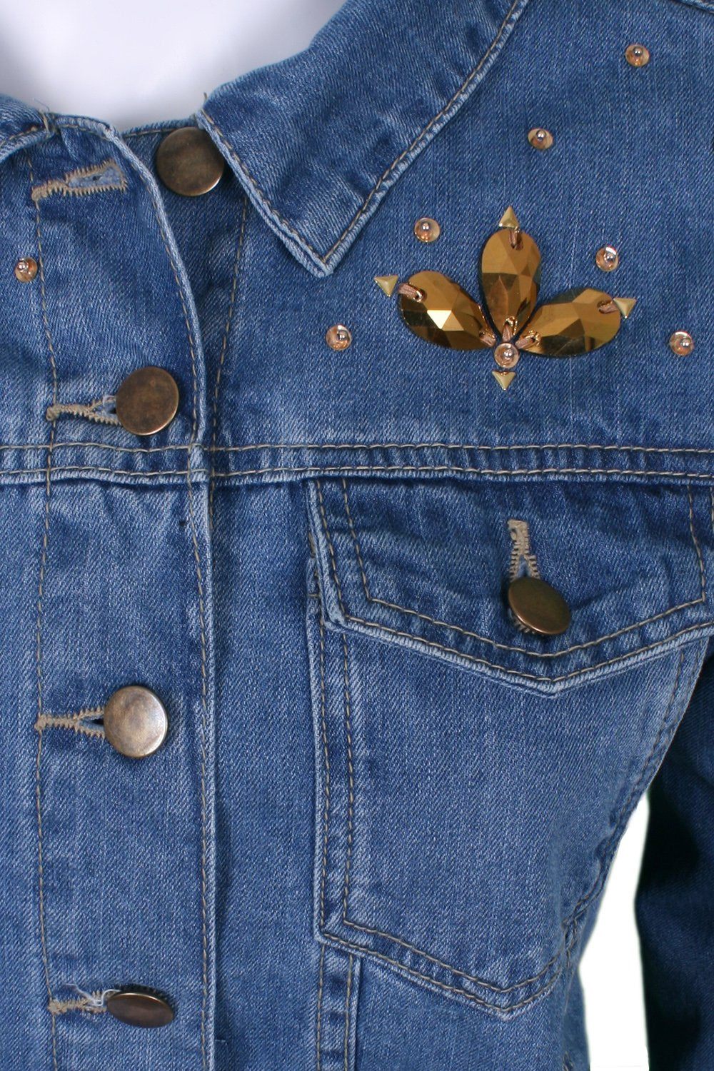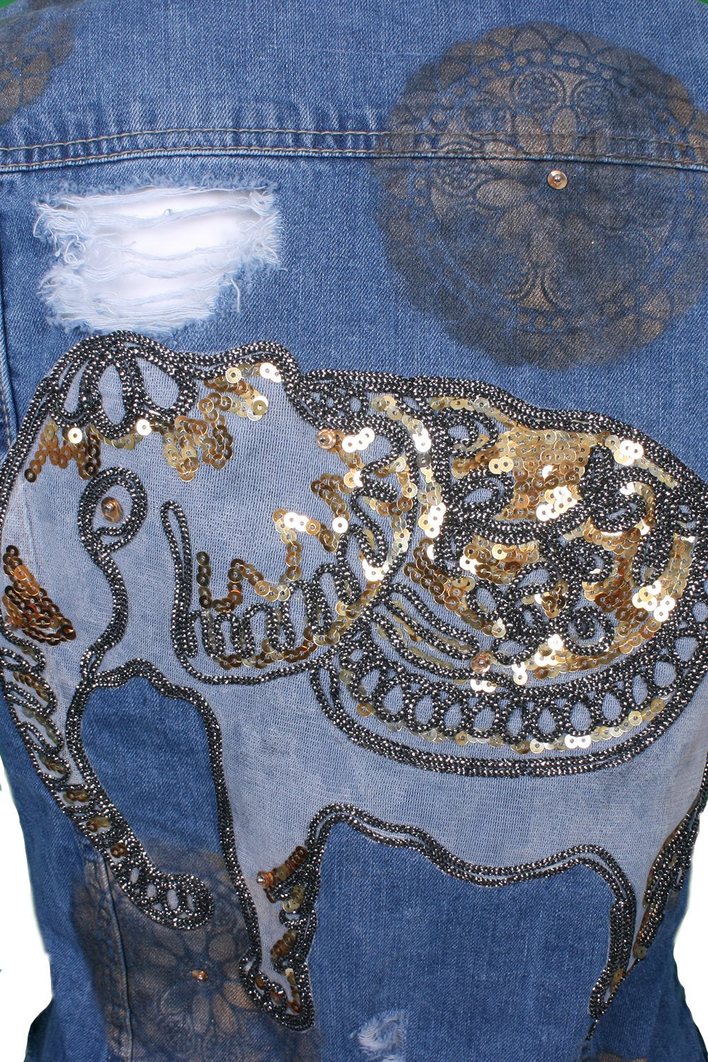 Denim jacket elephant embroidery with gold sequin embellishment