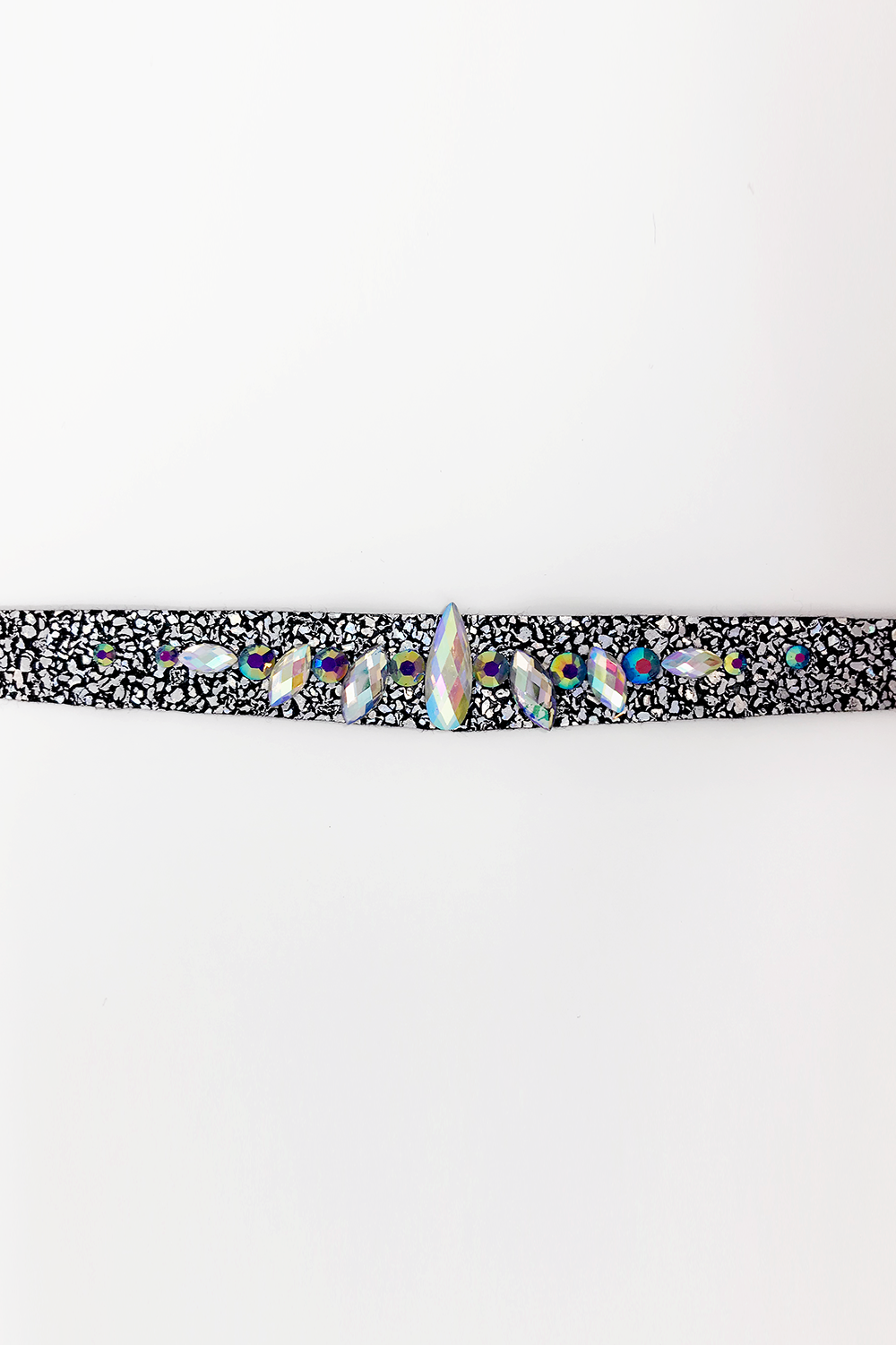 AB silver and black leatherette with iridescent rhinestones.
